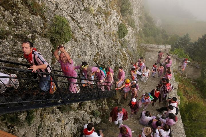 Desde muy temprano, los participantes comienzan a subir al monte de los Riscos de Bilibio vestidos completamente de blanco, con el tradicional pañuelo rojo al cuello. En las manos llevan botellas, mochilas y cubos repletos de vino tinto, listos para usar como munición en una guerra que nadie pretende ganar. Cuando el primer chorro de vino vuela por el aire, la fiesta comienza oficialmente, y en cuestión de minutos todos terminan empapados de pies a cabeza.