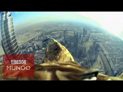 Con una cámara en el lomo, (Sony Action Cam) la ave descendió casi 830 metros desde el Burj Khalifa, el edificio más alto del mundo.